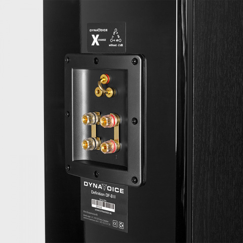 The massive, internally braced cabinet is built to minimize resonances, ensuring tight, controlled bass and powerful performance. The speaker's more robust Y30-grade ferrite magnet has an increased diameter from 98 mm to 109 mm, along with a 20% weight increase compared to previous generation Definition speakers, providing more control and impact in the lowest frequencies. The bi-wire terminal allows for separate connections for the tweeter and bass/midrange, while X-change enables fine-tuning of the midrange in four levels.