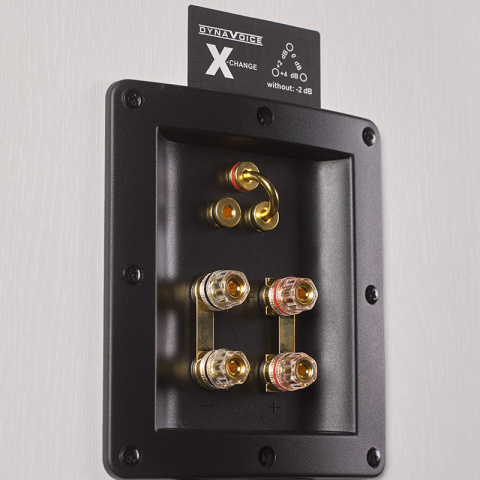 På den guldpläterade Bi-wire-terminalen har vi placerat en bygel där du kan finjustera mellanregistret. Du väljer mellan -2 dB / 0 dB / +2 dB / +4 dB och kommer direkt att uppleva en förändrad ljudkaraktär hos dina högtalare.